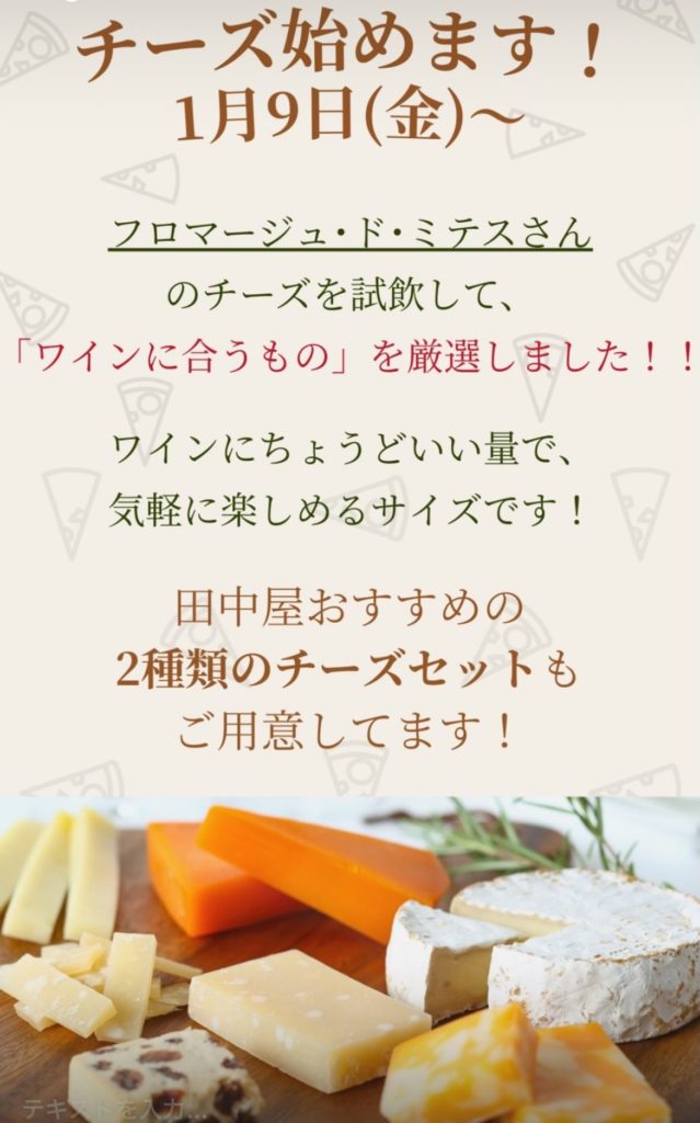 チーズを取り扱うことで、少しでも認知していただきたくて、1月はチーズとワインを楽しむイベントを企画しています。