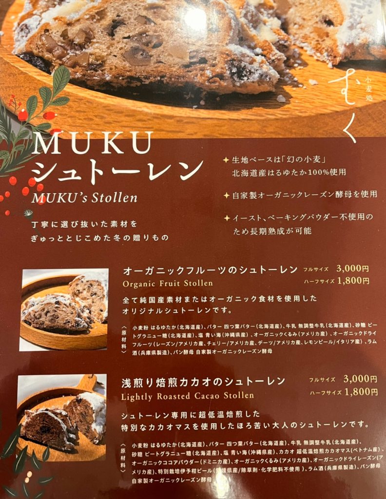 たくさんの魅力的なシュトーレンがありますが、3年前から、むくさんのシュトーレンをマキコレワインと共にご提案させていただいています。