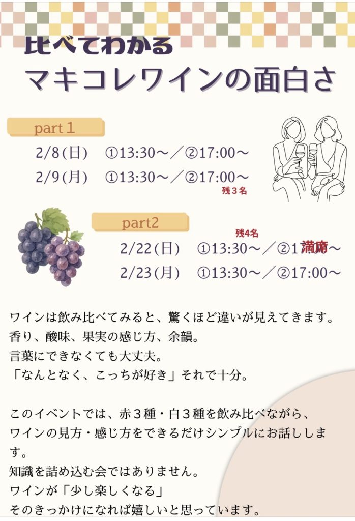 「私の舌って、なかなかやるじゃない!」「違いがわかるかも」マキコレワインのピュアさは、その違いをはっきり教えてくれます。ご自身で、気づけたとき、ワインはそれぞれ違うから、自分の好きを探したい。おもしろいかもって思えて、ワインって難しいという不安から楽しみに変わります。